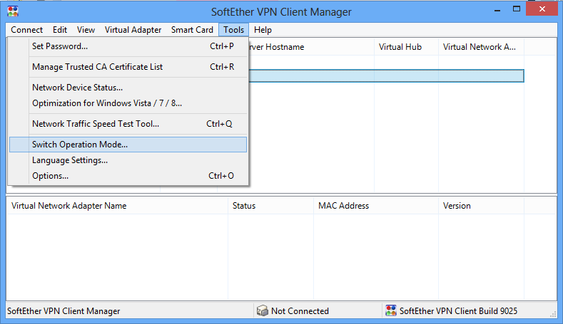 SoftEther VPN Client, SoftEther VPN Server, SoftEther VPN Bridge, and VPN Gate Relay Service will be installed on your computer as system services. System services always run in the background. System services usually do not appear on the computer display. Then your computer system is booted, system services automatically start in the background even before you or other users log in. To check whether SoftEther-related system service is running, check the process list or the background service list of your OS (called as "Services" in Windows, or "Daemons" in UNIX.) You can activate, deactivate, start, or stop system services using the functions of the OS anytime. SoftEther-related GUI tools for managing system services communicate with these system services. After you terminate these management GUI tools, SoftEther-related system services will continue to run in the background. System services consume CPU time, computer power, memory and disk space. Because system services consume power, your electricity charges and amount of thermal of your computer increase as result. In addition, there is a possibility that the mechanical parts of the life of your computer is reduced.