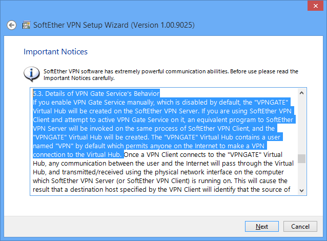 You can read the more-detailed behaviors and warnings about VPN Gate Public VPN Relay Service on the "Important Notices" screen in the installer.